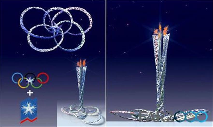 設(shè)計組還為奧林匹克標(biāo)志作了備選方案,將奧林匹克五環(huán)和索契運(yùn)動會的標(biāo)志星狀雪花結(jié)合在了一起。