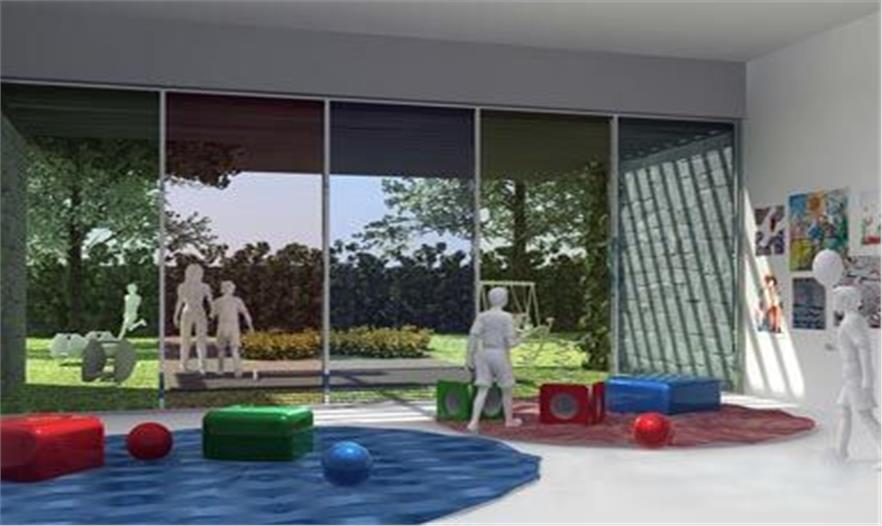 這座幼兒園用平行的墻體來調(diào)整室內(nèi)工作區(qū)和服務(wù)區(qū),同時又橫切了一條墻面,來區(qū)分出戶外空間和一座全封閉式的庭院,成為孩子們游戲的安全場所。這一空間以玻璃走廊環(huán)繞,是建筑中的主要通路,連接了所有的功能項目。