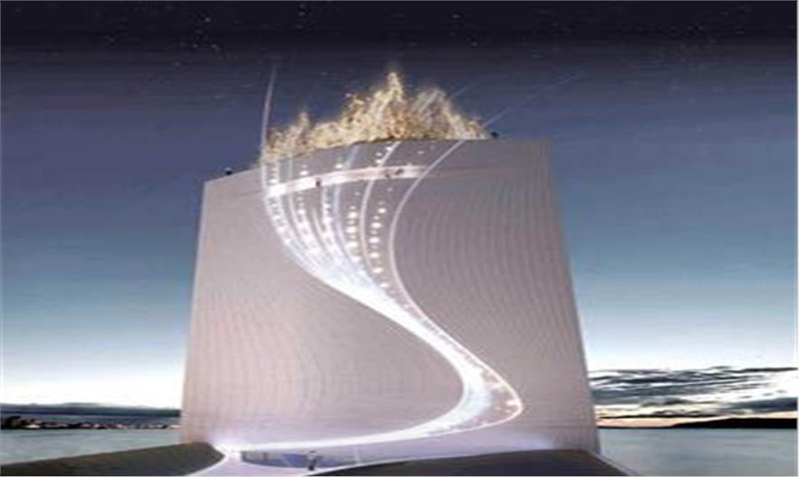 這座大廈容納了一座太陽(yáng)能發(fā)電廠,白天為奧運(yùn)村提供電能,多余的電將用來(lái)把海水泵入大廈。夜晚,這些水將重新回到海中,通過(guò)渦輪發(fā)電,用來(lái)為大廈照明或輸送到城市。