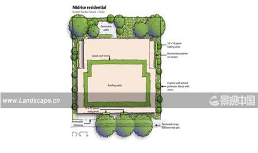 項目概述:西雅圖綠色因子(SGF)是為增加城市景觀質(zhì)量創(chuàng)新發(fā)展的設(shè)計標(biāo)準(zhǔn)。受歐洲先例影響,規(guī)劃者發(fā)明了一個評分體系以鼓勵有吸引力和生態(tài)功能的景觀,包括比如綠色屋頂和墻體、透水鋪裝、樹木保護(hù)和糧食生產(chǎn)。SGF被西雅圖于2006年采納、2009年進(jìn)行了拓展,它激發(fā)了全國各市進(jìn)行相似標(biāo)準(zhǔn)的研究。