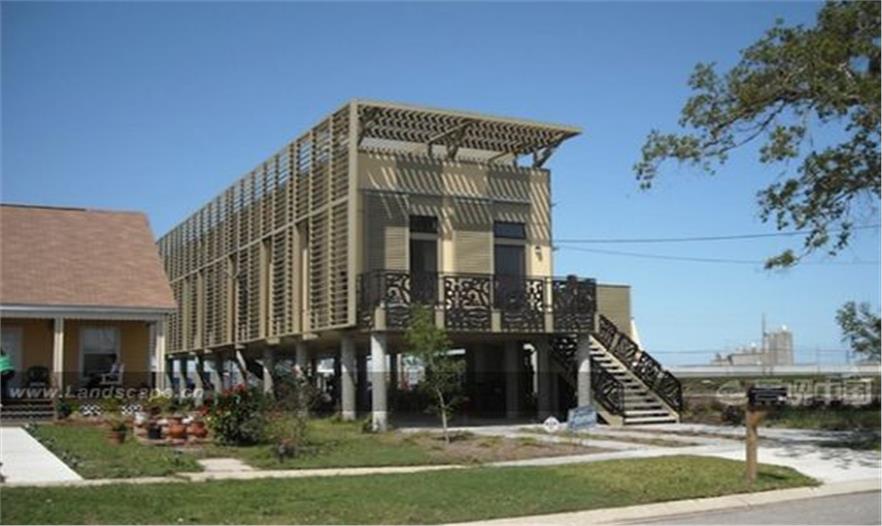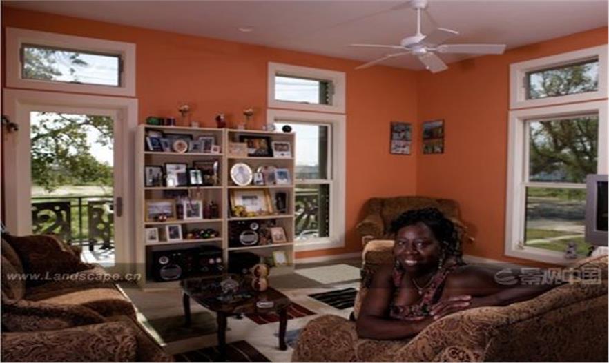 該會館是Brad Pitt’s(布拉德皮特)的矯正基金(Make it right)最早建成的項目之一。該基金會正在被Katrina颶風(fēng)及其帶來的洪水摧毀德沃德區(qū)建造150個家庭住宅。