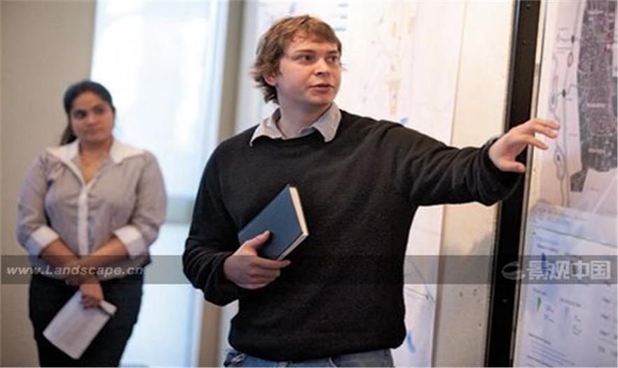His students Chandrani Majumdar and Daniel Stevens present their water-sensitive plan for the township in a March 10 class, before visiting China to see the site.