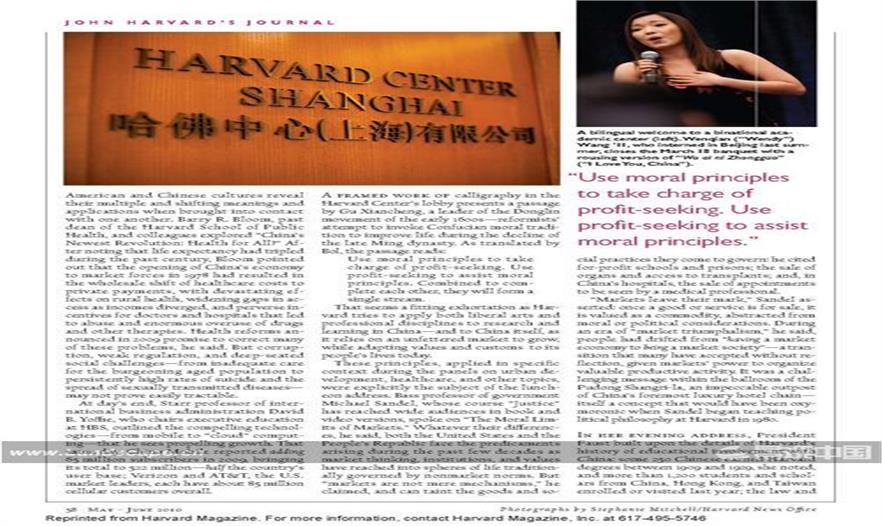That seems a fitting exhortation as Harvard tries to apply both liberal arts and professional disciplines to research and learning in China—and to China itself, as it relies on an unfettered market to grow, while adapting values and customs to its people’s lives today.