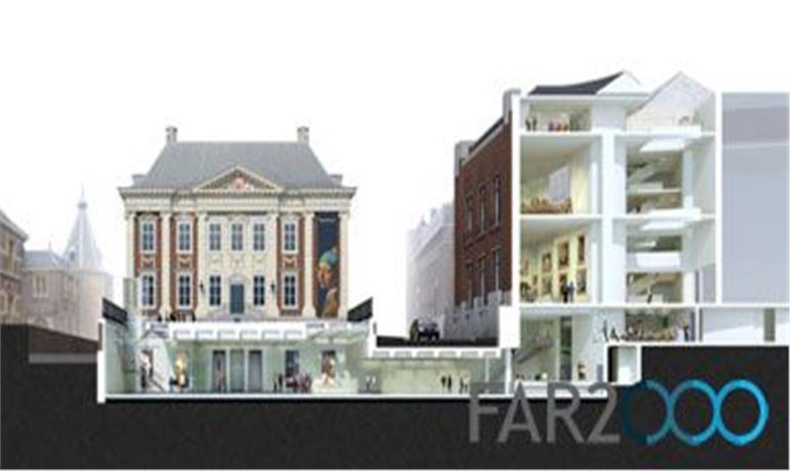 Hans van Heeswijk事務(wù)所為海牙莫里斯宮博物館(Mauritshuis Museum)設(shè)計了預(yù)算2200萬歐元的擴(kuò)建工程。通過一座地下大廳,博物館與對面的建筑連接起來,現(xiàn)有展館面積翻了一番,達(dá)到6400平方米。擴(kuò)建部分包括一座新的展廳、一座講堂以及會議室和教育空間等。
