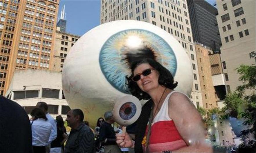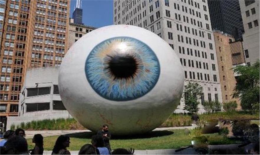 7月7日,一座9米多高的“眼球”雕像在芝加哥市中心的普里茨克公園揭幕。