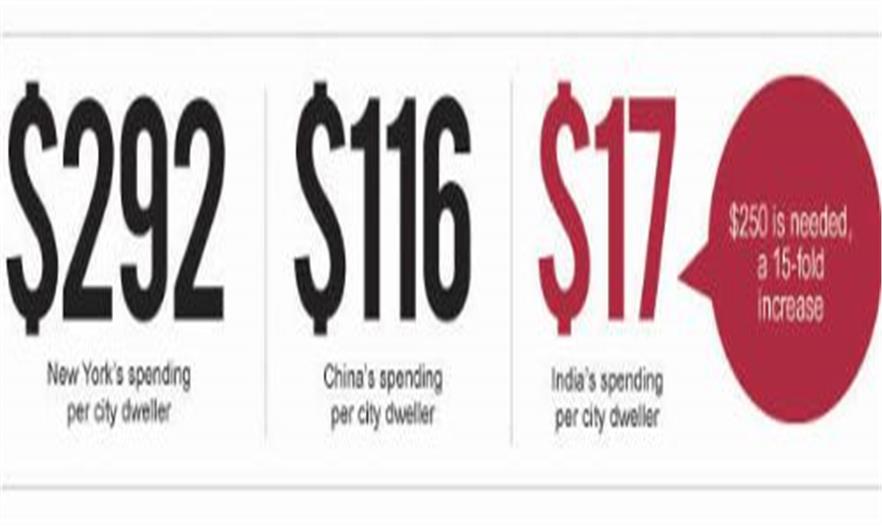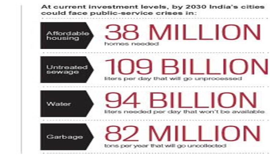 以目前投資速度計(jì)算,到2030年印度城市將面臨公共服務(wù)危機(jī),需要3800萬套住房,每天有1090億升污水得不到處理,每天缺少940億升用水,每年有820億噸垃圾待清理。
