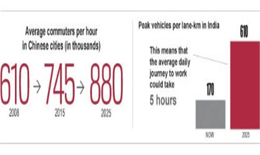 即使中國和印度盡可能多地修建鐵路、公路和地鐵,仍將無法滿足城市化發(fā)展和汽車數(shù)量激增的需要。過去20年,中國汽車數(shù)量增長速度是道路承載能力的3倍,北京市內(nèi)車速已下降到不足倫敦的一半。印度的前景更糟,如果該國城市基礎(chǔ)設(shè)施投資按照預(yù)期20年3000億美元的速度進(jìn)行,全國交通將陷入停滯狀態(tài)。