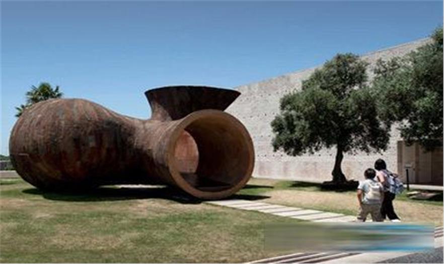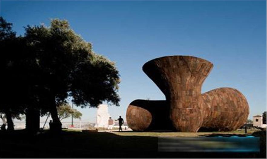 1968年設(shè)立在Diario de Noticias美術(shù)館前的雕塑名為“Modulo”,Arruda的雕塑是它的56倍。觀眾可以親臨實(shí)景,觸摸其內(nèi)外部。雕塑采用計(jì)算機(jī)塑模,在金屬框架外覆蓋軟木等不同層次的材料,某些部分是不透明的,某些部分則是透明的,為內(nèi)部空間塑造了不同的場景。這座位于Olives花園的雕塑因而成了一個(gè)觀眾都可以參與的場所。