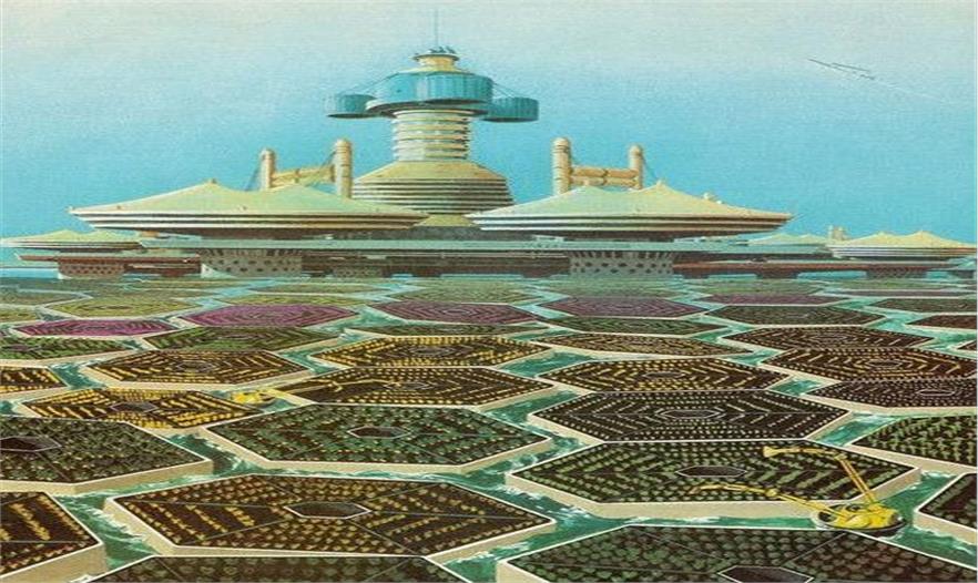 1984年,沃爾特·迪斯尼對(duì)2050年近海農(nóng)業(yè)區(qū)的農(nóng)業(yè)發(fā)展發(fā)生了興趣。他出版了一本名為《農(nóng)業(yè)的未來(lái)世界》的書(shū),設(shè)想了未來(lái)的海上城市,機(jī)器人負(fù)責(zé)照顧漂浮平臺(tái)上的農(nóng)作物。海水蒸發(fā)淡化脫鹽后進(jìn)入平臺(tái)底部滋養(yǎng)農(nóng)作物。