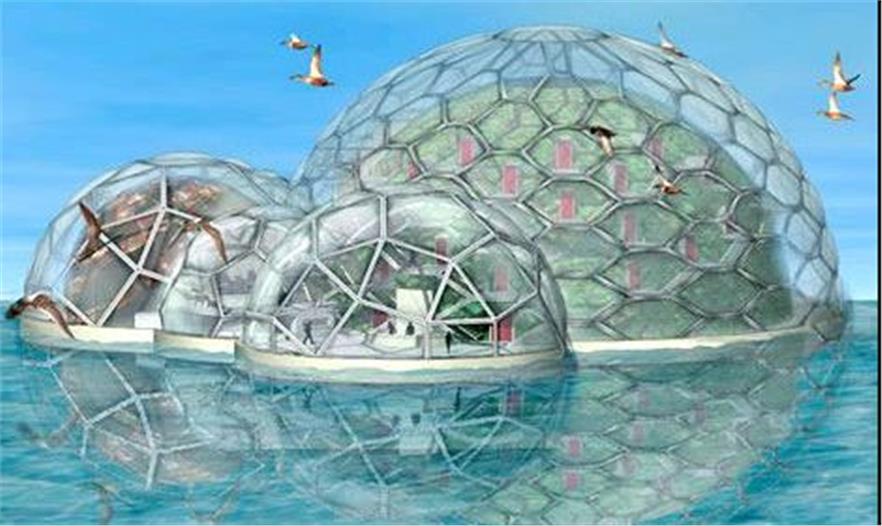早在20世紀(jì)60年代,未來(lái)學(xué)家、建筑師以及發(fā)明家巴克明斯特·富勒就提出在東京灣建造四面體超級(jí)都市的建筑概念,可以容納6000名居民。富勒還提出淡化海水和循環(huán)利用海水的可能,但使用陸地上的廢棄建筑材料、不會(huì)造成污染等概念,在當(dāng)時(shí)并不受歡迎。