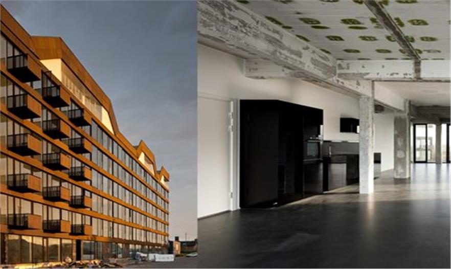大樓內總共包括200間公寓,10家商鋪,以及洗衣店、咖啡店和健身房等配套設施。為了滿足住客的不同需求,公寓的種類也作了不同分類,每一種類型的公寓都針對某一特定人群的品位。與“焦黃”外衣所不同的是,公寓內部的裝潢呈現(xiàn)出簡潔、清新的格調:墻面是清一色的純白,地面有白色大理石或淺色木地板等類型,而家具則以簡約的黑白色為主,有些公寓還搭配了極富設計感的燈飾。簡潔的室內環(huán)境不但體現(xiàn)出典型北歐式家居風格,而且也給主人大量的“留白”,好讓他們按照自己的意愿布置房間。