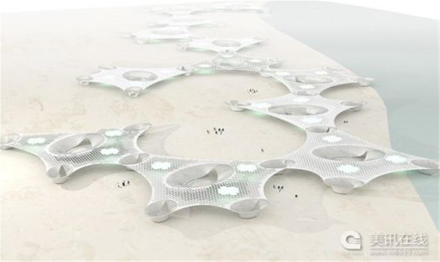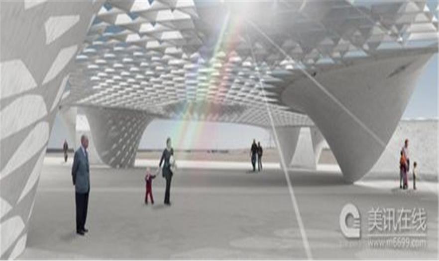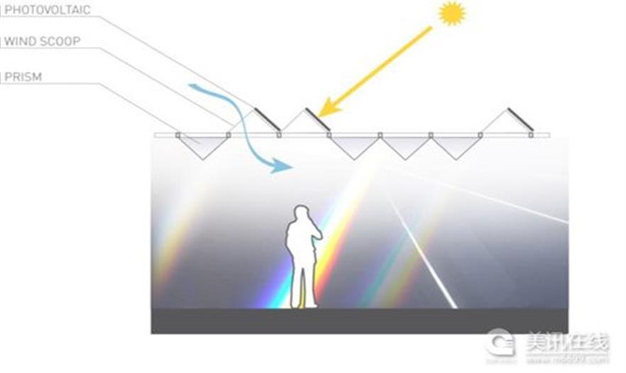 棱鏡云能在其表面產(chǎn)生影子和光譜光線。它能把看不見的元素呈現(xiàn)出來,讓人們注意到那些未能被觀察到的大氣元素。在空曠的沙漠之中,棱鏡云項目讓沙漠看起來充實(shí)不少。穿過棱鏡的光線被分散成多種顏色的光線,人們就可以很輕易地觀察到光線。隨著建筑頂篷的波動,人們也能輕易地看到并聽到風(fēng)。這個實(shí)驗性的“綠洲”把天空和沙漠都捕捉到這個混凝土建筑之中。頂篷上的太陽能電池板可以轉(zhuǎn)化太陽能。這項目把自然的極致之美體現(xiàn)出來了。