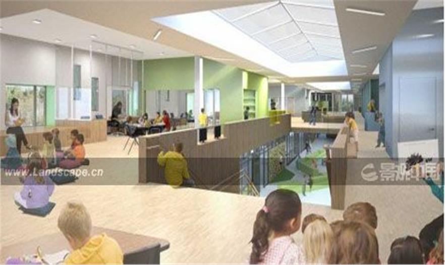 不同的年級被劃分到不同的區(qū)域(一年級到四年級被安排在東邊,五年級到七年級被安排在西邊,有特殊需求的學(xué)生被安排在中間,創(chuàng)造出一個真正融合的校園),從核心區(qū)域延伸出的分支部分能很好的銜接運(yùn)動區(qū)以及休閑娛樂多功能廳。