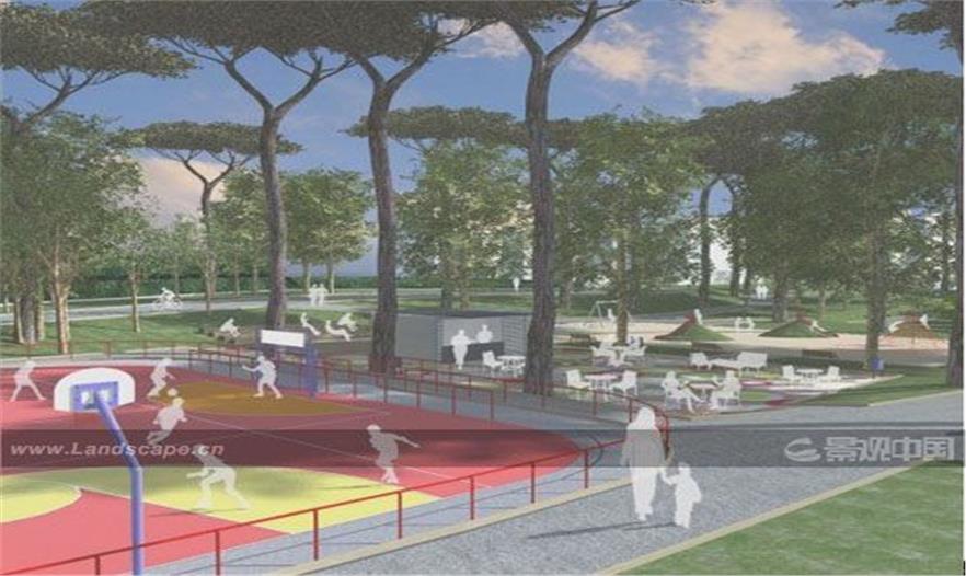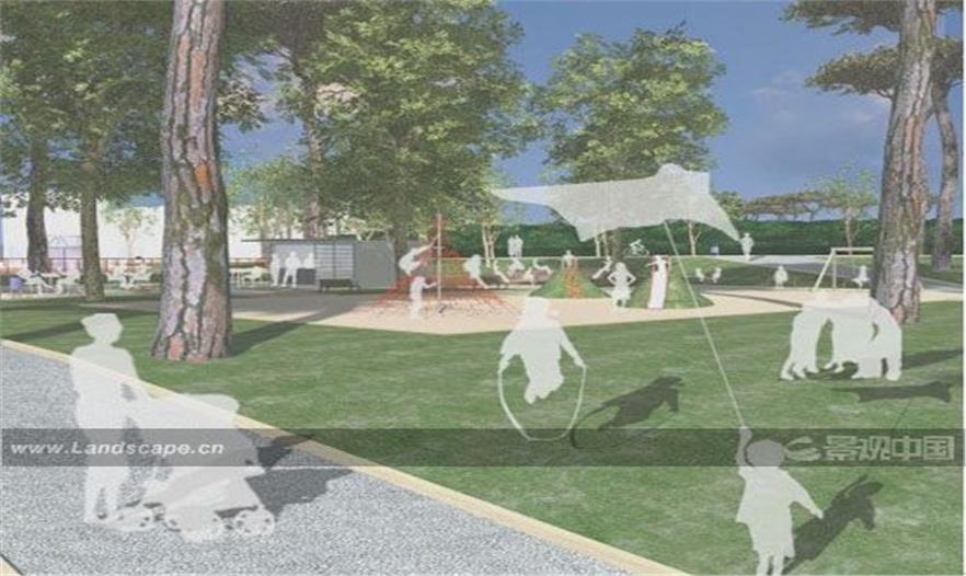 受保護區(qū): 青少年運動場,建立在現(xiàn)有的廢棄滑冰場上,作為多功能活動區(qū); 露天劇場,下沉斜面上設有木質的座椅,劇場階梯正對著正前方的露天音樂臺; 兒童活動區(qū),孩子們可以在這里進行各種新游戲; 亞熱帶植物區(qū),被現(xiàn)有的棕櫚樹圍繞著。