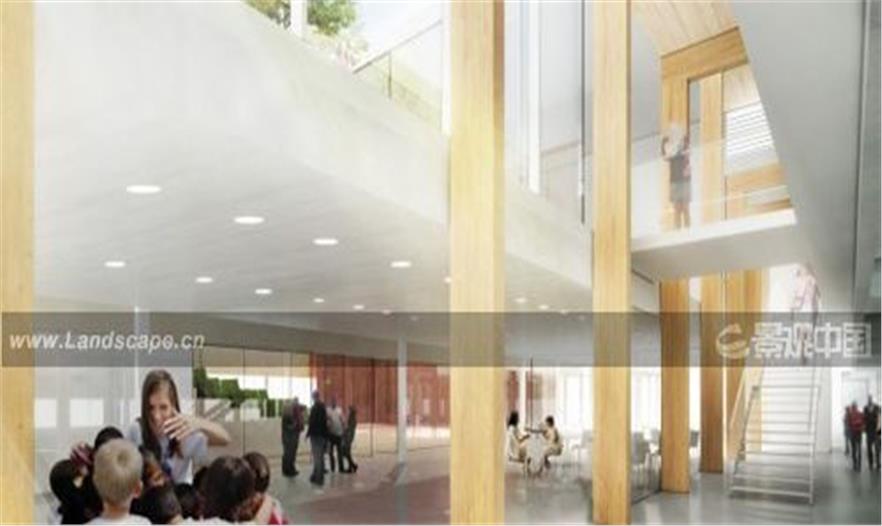 因此,中心設(shè)計(jì)方案中提供了許多不同類型的活動(dòng)場(chǎng)所。簡(jiǎn)單來說,該中心通過多元化的設(shè)計(jì),既能提供安靜內(nèi)省的學(xué)習(xí)空間,又具有“喧囂”的社會(huì)活動(dòng)場(chǎng)所。大體上說來,中心一層提供的活動(dòng)場(chǎng)所擁有良好的光照條件和視覺通透性,暢通無阻的視線促進(jìn)了公眾交流。與此相反,上方的樓層被設(shè)計(jì)為安靜學(xué)習(xí)區(qū),視線通透性受到一定限制,天窗中透過的光線與陰影烘托出內(nèi)向的環(huán)境氛圍,仿佛與世隔絕一般。在這里,“人們能能堅(jiān)持下去,被文字和段落喚醒?!?/p>