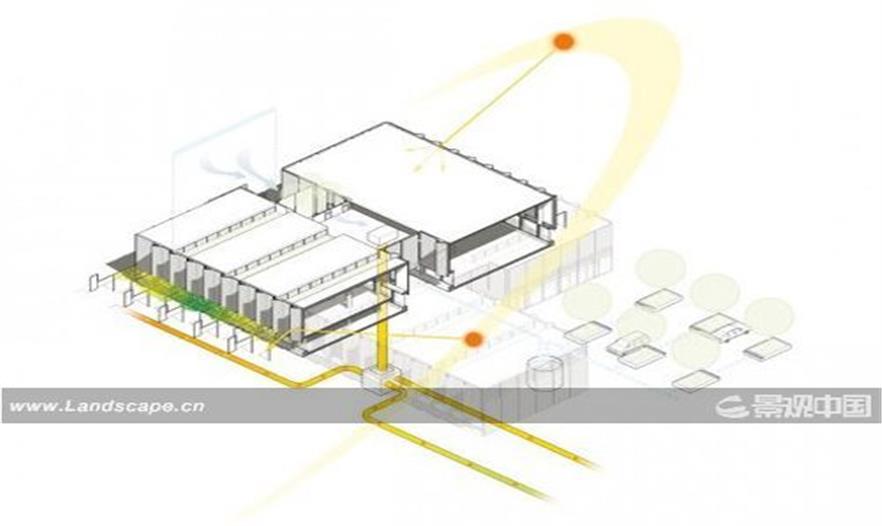 無論是在實(shí)施層面還是在概念層面,泊車花園的設(shè)計(jì)都將作為文化中心回歸周邊社區(qū)的一種途徑。通過提供泊車區(qū)域和種植空間,這里會(huì)擁有一年一度的收獲季,植物的自然生長也使得空間充滿了愉悅感受。這條設(shè)計(jì)策略也削弱了硬質(zhì)屋頂與泊車區(qū)域?qū)幼∩鐓^(qū)視覺效果的負(fù)面影響。