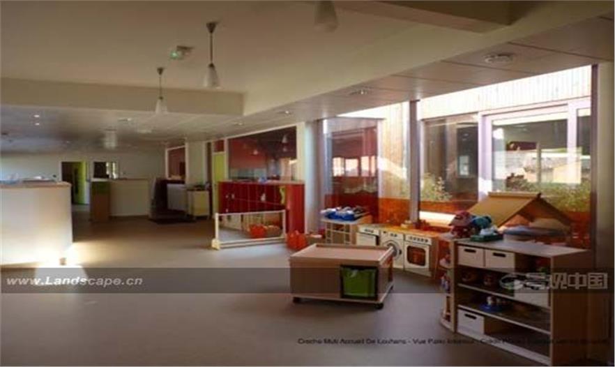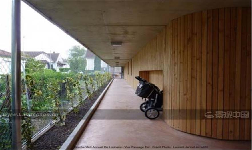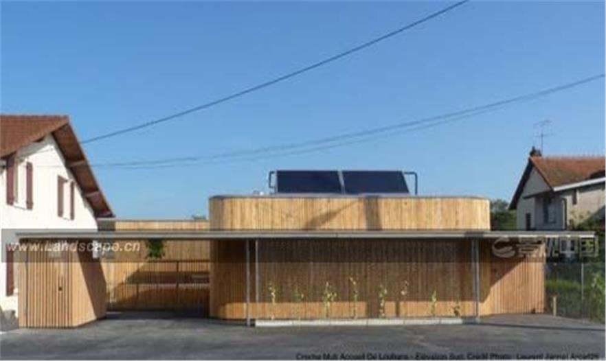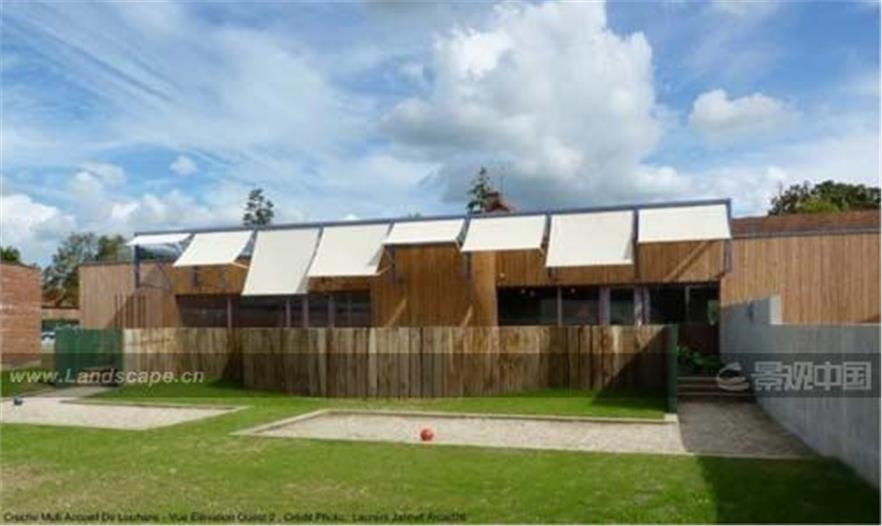 這個(gè)Louhans幼兒園設(shè)計(jì)項(xiàng)目需要最新最現(xiàn)代化的幼兒早教設(shè)施,并能容納40名兒童。它位于兩個(gè)社區(qū)之間,場(chǎng)地位置十分理想,但其狹長(zhǎng)的場(chǎng)地可能需要用籬笆圍起來(lái)。面對(duì)這樣的場(chǎng)地狀況,設(shè)計(jì)師設(shè)計(jì)出一個(gè)簡(jiǎn)約的書卷狀建筑,略去了多余的鋪張裝飾。該建筑以屋頂?shù)木G色天臺(tái)為特色,屋頂設(shè)有太陽(yáng)能電池板,建筑物突出部分的內(nèi)外連接處都環(huán)繞著混凝土天蓬。以下是有關(guān)該設(shè)計(jì)方案的詳細(xì)介紹。