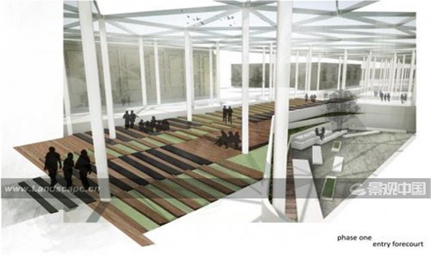 第二階段是對現(xiàn)存場所進(jìn)行完善,并在廣場和天階之間建設(shè)新設(shè)施,使其成為“新的”校園建筑。