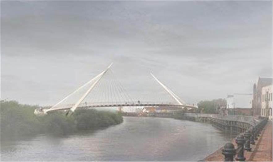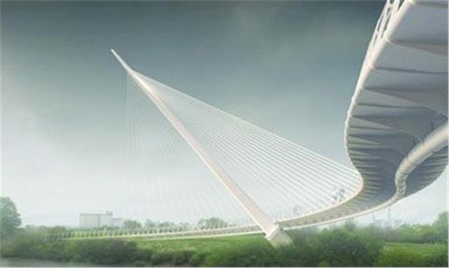 276米長(zhǎng)的橋面用懸索懸垂,并以一對(duì)尖細(xì)的桅桿來(lái)支撐。這座橋梁是對(duì)附近一座公路橋的補(bǔ)充,估計(jì)需要600萬(wàn)英鎊的資金。 Houchell在Wilkion Eyre事務(wù)所工作了5年,曾經(jīng)設(shè)計(jì)過(guò)一些橋梁,如即將在2012年初投入運(yùn)營(yíng)的“雙帆橋”,位于多賽特(Dorset)的普爾市(Poole)。他是在2008年底離職的,隨后成立了Houchell工作室。