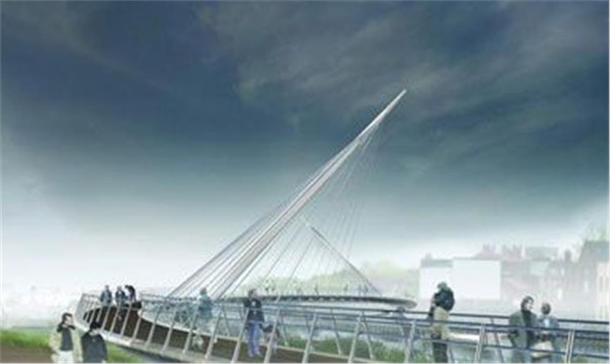 原Wilkinson Eyre事務(wù)所設(shè)計(jì)師Oliver Houchell公布了在林肯郡Trent河上設(shè)計(jì)的一座步行和自行橋的方案。 276米長(zhǎng)的橋面用懸索懸垂,并以一對(duì)尖細(xì)的桅桿來(lái)支撐。這座橋梁是對(duì)附近一座公路橋的補(bǔ)" />