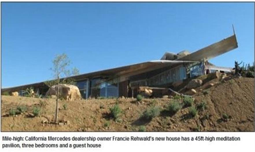 據(jù)報(bào)道,現(xiàn)年63歲的弗蘭西絲(Francie Rehwald)是奔馳汽車在加州最大的代理商之一。幾年前才退休的她,在當(dāng)?shù)刭I下一處可俯瞰太平洋的300多畝大的地產(chǎn),并決定蓋一棟自己夢(mèng)想中的住宅。