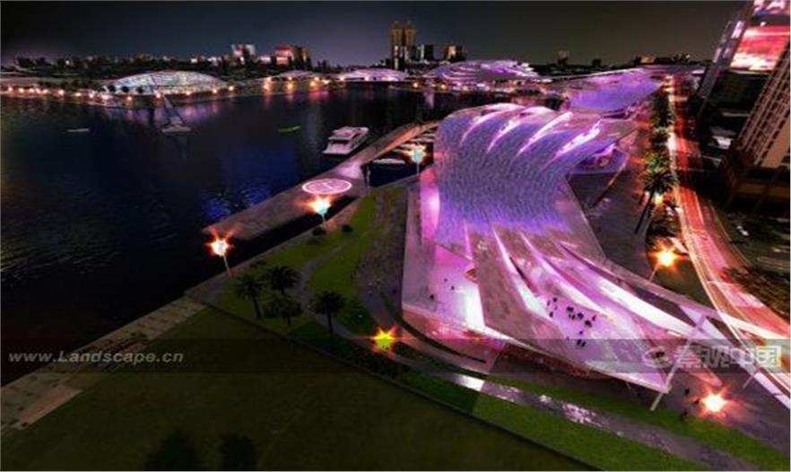 建筑的波紋造型理念源于高雄市的城市特征,設(shè)計(jì)師認(rèn)為這樣的城市地標(biāo)對于高雄市是很適宜的。波紋這種自然符號既代表海浪,又象征著聲音,這正意味著設(shè)計(jì)師試圖強(qiáng)調(diào)的音樂元素。這里將為不同層次的參與者以及社會(huì)大眾提供一個(gè)即興表演的場所,人們在此交流、聚集,感受本土文化與國際潮流的水乳交融。這才是整個(gè)方案追求的目標(biāo)。