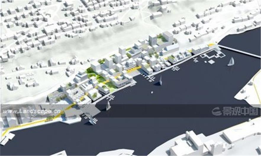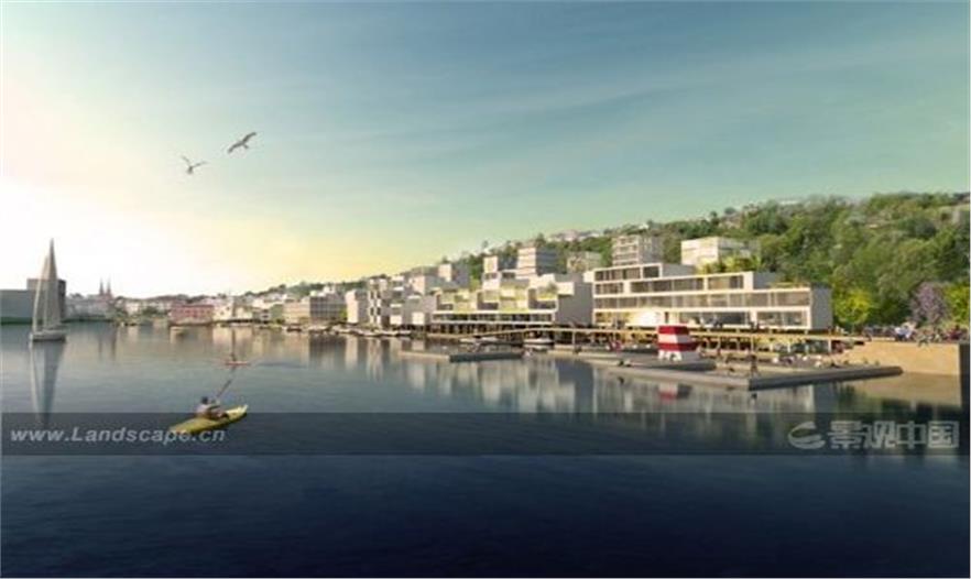 日前,來自挪威奧斯陸的A-lab設(shè)計(jì)公司與來自丹麥哥本哈根的SEA設(shè)計(jì)公司合作完成的設(shè)計(jì)方案贏得了挪威希恩港口新城發(fā)展設(shè)計(jì)大賽,項(xiàng)目場地之前為港口區(qū),占地4公頃,目前計(jì)劃開發(fā)為一個(gè)新社區(qū)。場地西側(cè)臨水,東側(cè)靠山。