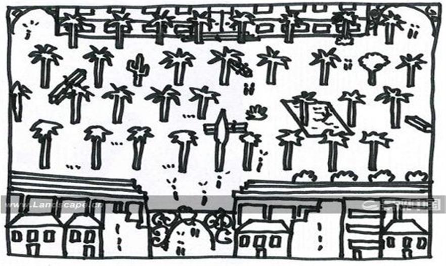 對(duì)于城市空間而言,高大的棕櫚樹能成為這個(gè)小尺度城市的地標(biāo)形象。而在街頭,花園成為一個(gè)充滿想象力的活力場所,鄉(xiāng)土樹木與花草劃分出空間的私密與開放,明亮與陰暗。