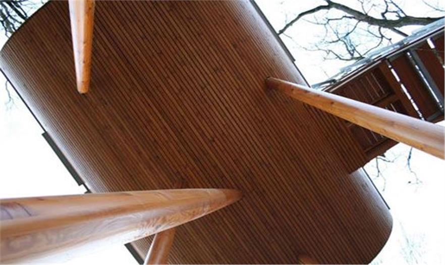 Baumraum由七根用堅(jiān)固的西伯利亞松木制成的柱子支撐。達(dá)到小屋需要通過特殊的圍繞著樹木安裝的平臺。孩子們可以在平臺上玩耍。