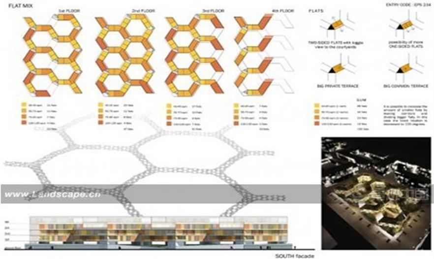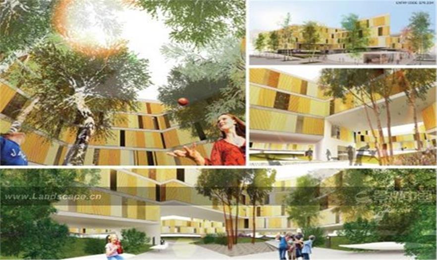 它應(yīng)該是這樣一種尺度:當(dāng)孩子們?cè)谕ピ褐型嫠r(shí),房屋中的父母能聽見孩子們的笑聲;當(dāng)孩子們抬頭仰望時(shí),他們能看清窗口中父母的臉孔。因此設(shè)計(jì)師認(rèn)為建筑的層數(shù)以兩至三層為宜,最多不超過四層。這樣的建筑高度將允許樹冠從屋頂伸展開去,吸引鳥兒盤旋歌唱,居民也能更接近自然。