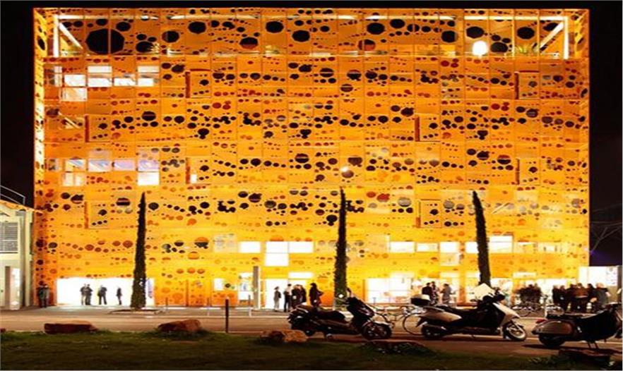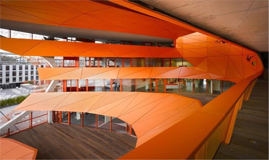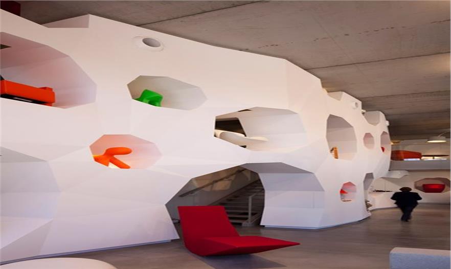 為了創(chuàng)造空間,Jakob + MacFarlane做了一系列的體量干擾,立方體減去三個(gè)圓錐體量,這樣便使該空間在三個(gè)層面上暴露出來(lái):正立面的角上,屋頂及入口面。這些局部的變化便形成了建筑、使用者、基地、光照之間的空間和關(guān)系。