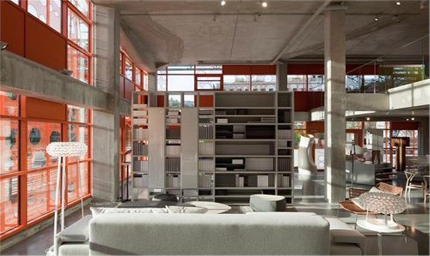 橘立方緊鄰現(xiàn)有的大廳,突出其獨(dú)立性。它是一個(gè)29*33米的規(guī)整框架,由五級(jí)的混凝土支柱組成。橘色是噴涂的一種含鉛油漆,是海港區(qū)常用的一種工業(yè)顏色。