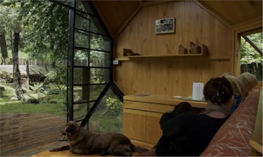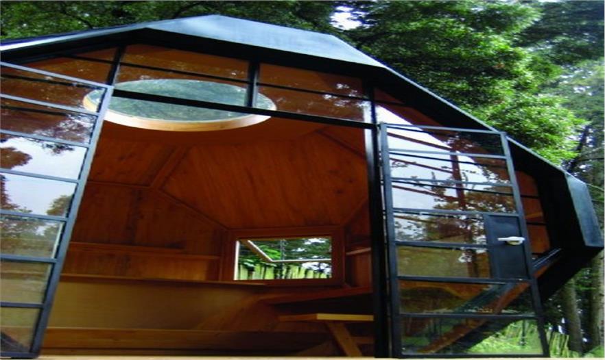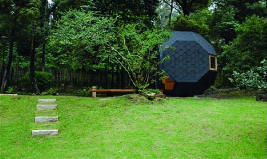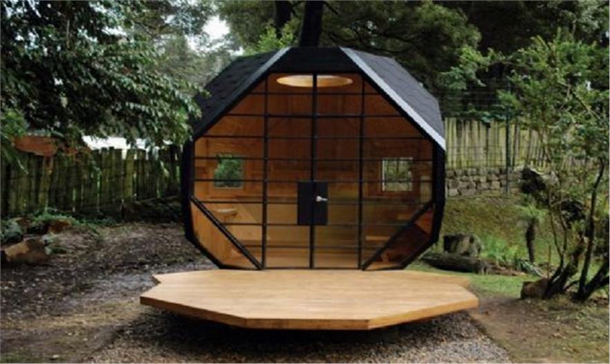 項(xiàng)目一開(kāi)始便想到利用當(dāng)?shù)夭牧辖ㄔ臁=ㄖ嫦蛑匀痪坝^,采用輕型結(jié)構(gòu)自我支撐,與此同時(shí)內(nèi)部提供了可供幾項(xiàng)日?;顒?dòng)的空間。建造造型采用了很簡(jiǎn)單的幾何體,有助于幫助提高兒童早期的幾何認(rèn)知能力。最終采取了一個(gè)規(guī)則的多面體,“八面體”轉(zhuǎn)換成的適合居住的空間,一個(gè)小窗在側(cè)面,頂部可開(kāi)啟,讓陽(yáng)光射入的同時(shí)起到空氣循環(huán)的作用。內(nèi)部空間安排了一個(gè)書(shū)寫(xiě)區(qū)域,配有凳子和擱物架,還有一個(gè)舒適的沙發(fā)。