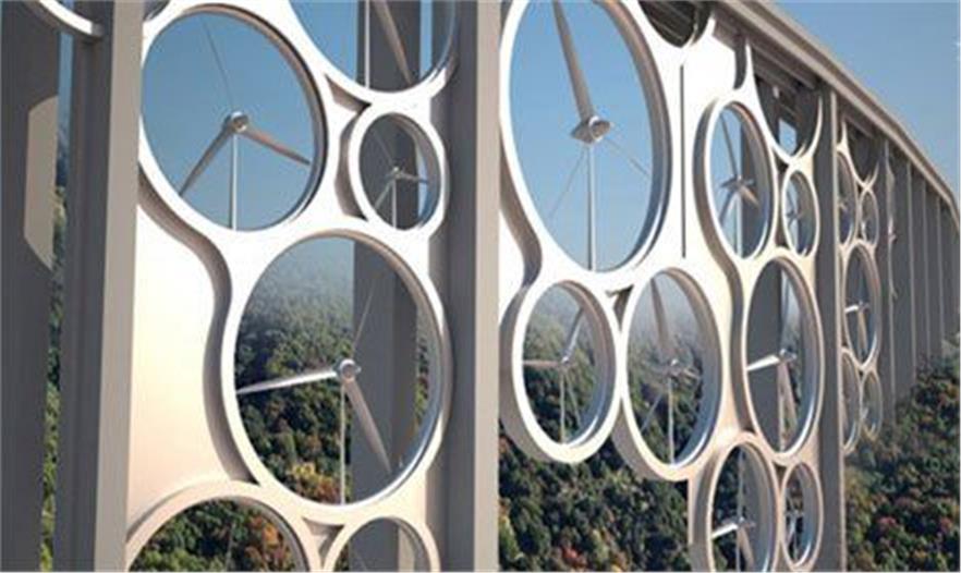 橋面不是用傳統(tǒng)瀝青鋪設(shè),而是用密集的太陽(yáng)電池板所代替,太陽(yáng)能電池板上面覆蓋著一層耐用的塑膠材料。太陽(yáng)能電池板每年大約可產(chǎn)生1120萬千瓦時(shí)的電量。同時(shí),在橋梁支撐結(jié)構(gòu)之間的空隙中安裝了26臺(tái)風(fēng)力渦輪機(jī),每年可產(chǎn)生3600萬千瓦時(shí)電量。所有這些電量可滿足15000個(gè)家庭的用電需求。太陽(yáng)能風(fēng)力發(fā)電橋所能帶來的好處遠(yuǎn)不止這些。按照設(shè)計(jì)師的構(gòu)想,還將在橋梁兩側(cè)建設(shè)小型農(nóng)場(chǎng)和市場(chǎng)。雖然這些設(shè)計(jì)都非常誘人,但是人們更愿意看到城市設(shè)計(jì)者集中關(guān)注第一部分的設(shè)計(jì),將這些綠色能源收集裝置整合到人們?nèi)粘I畹慕ㄖ?,激發(fā)更加奇特的設(shè)計(jì)理念。