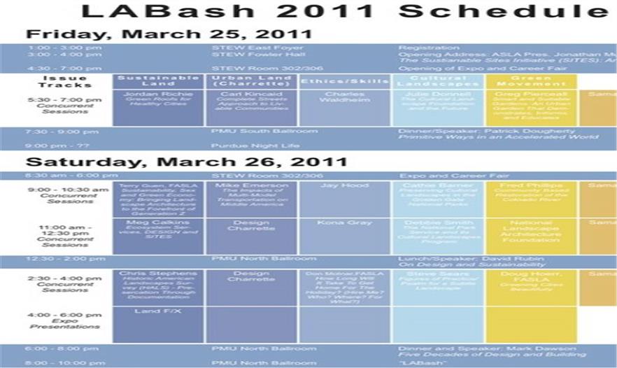 In March of 2011, Purdue University will spearhead an international symposium with the goal of reaching the global landscape architecture community – LABASH 2001. Over the course of two days, the symposium will present opportunities to learn, explore and discover landscape architecture as stu-dents and future professionals. Lectures and demonstrations from twenty professionals, a design charette, and tours of Frank Lloyd Wright’s Samara House will be included. YOUTHLA will be the official media partner reporting the whole event.