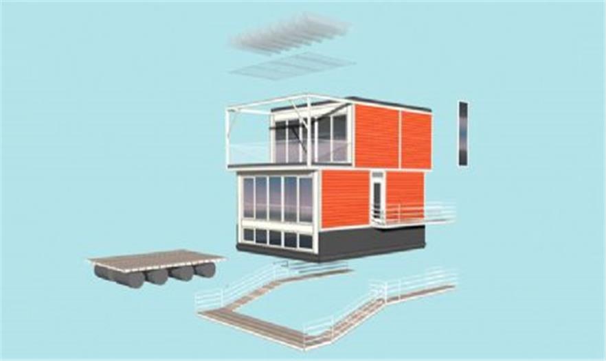 建筑立面選用了光滑且色彩鮮艷的鋁塑板,結(jié)構(gòu)則使用了輕質(zhì)鋼框架,居住著可以根據(jù)自己的細(xì)化最大限度的改變、設(shè)計(jì)自己的住宅,例如,業(yè)主們可以自行決窗戶的安裝位置。這些住宅建筑全部由浸入式的混凝土錨固定、支撐,居住者可根據(jù)需要在漂浮的住宅上加建——花房、漂浮的陽(yáng)臺(tái)和涼棚——這些都可以簡(jiǎn)易的加建在鋼框架上。