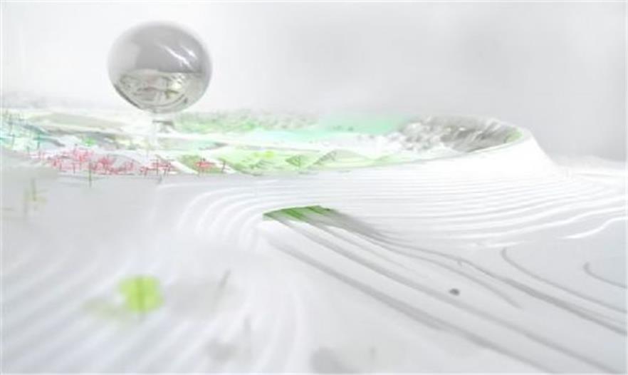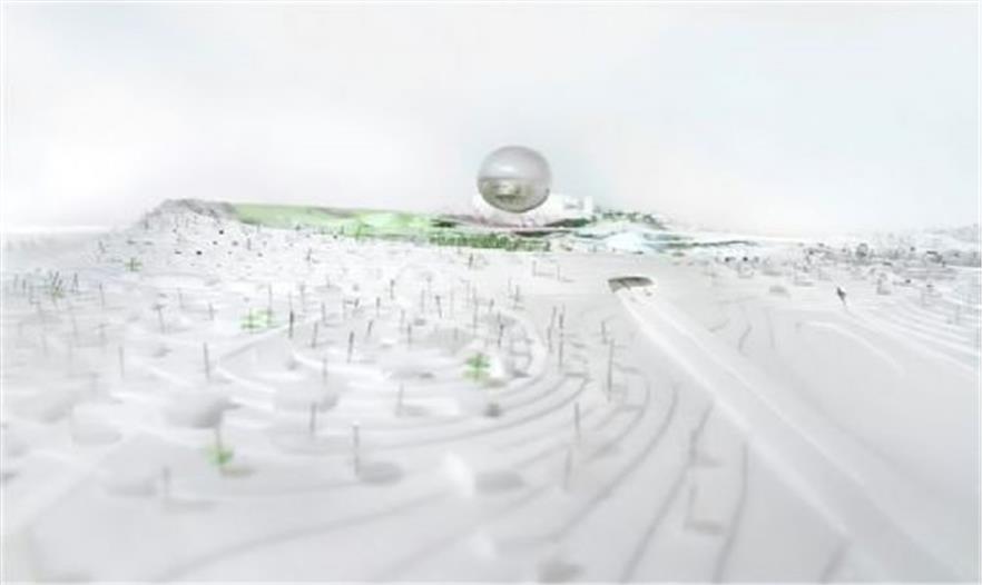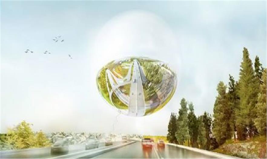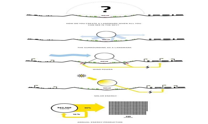 為了在不變動(dòng)基地地形的前提下創(chuàng)造一個(gè)有趣的景觀形式,BIG設(shè)計(jì)了一個(gè)可以反光的巨大球形鏡面,這個(gè)球體懸浮在空中,為地面上的駕駛者反射了180度的城市景觀,便于司機(jī)了解周邊情況。球體表面有30%的面積都覆蓋了光伏電池,為自身漂浮和周邊235戶居民提供了必要的電能。這個(gè)球形物體作為一個(gè)視覺符號和地標(biāo)反映了四季的變化以及地面上的城市生活。