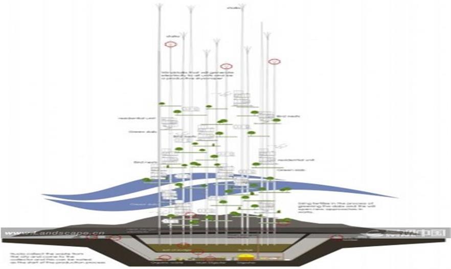 居民:設(shè)計(jì)師試圖改變社會(huì)對(duì)于這些無(wú)家可歸的拾荒者們的看法,給他們平等的做人權(quán)利,重建他們的生活,讓他們能對(duì)社會(huì)有所貢獻(xiàn)。種植業(yè)和畜牧業(yè)將能給拾荒者提供大量的工作機(jī)會(huì),環(huán)境元素由此重鑄。