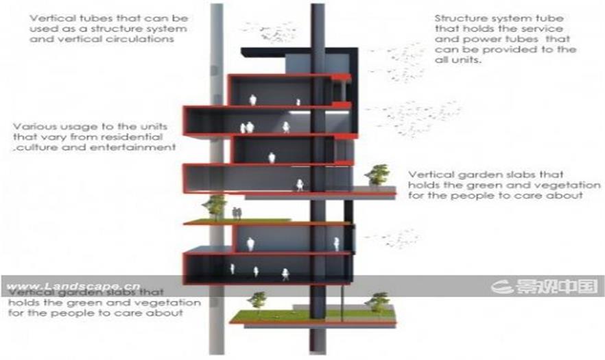 植物:“生命的種子”大樓中將延伸出許多綠色板塊,為大樓提供大量有機(jī)元素,使整座大樓能夠自給自足,減少污染。