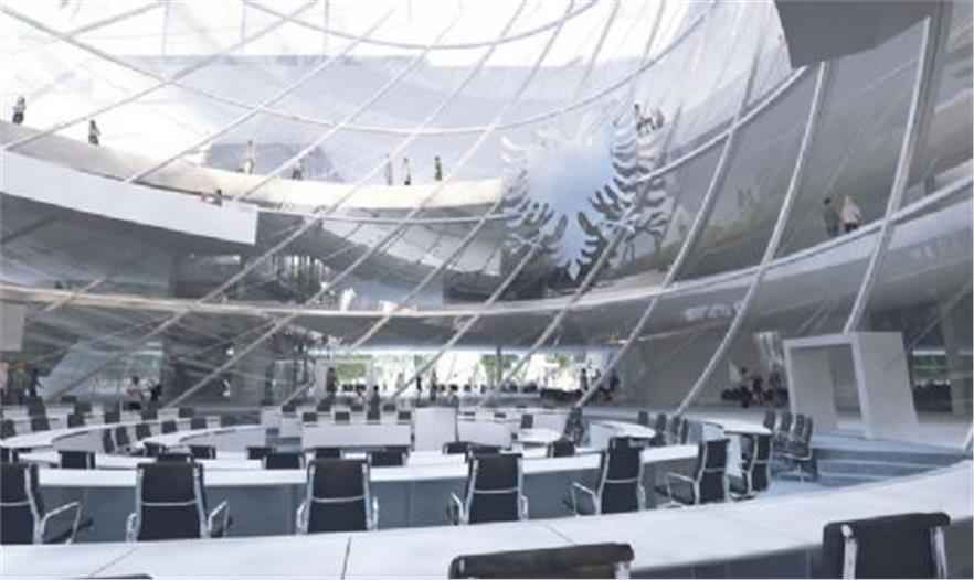維也納建筑事務(wù)所coop himmelb(l)au藍(lán)天組在“阿爾巴尼亞共和國議會(huì)大廈”競賽中獲勝,這個(gè)方案位于該國首都地拉那。這也是藍(lán)天組在阿爾巴尼亞的首個(gè)建筑項(xiàng)目。
