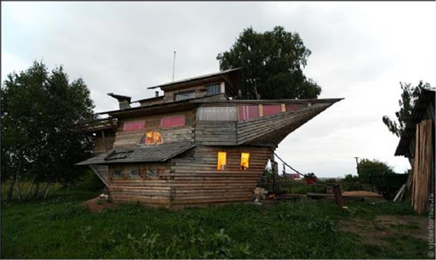 這座不尋常的建筑叫做“尼古拉耶夫方舟”,是來自俄羅斯的農(nóng)民尼古拉自行建造的。有趣的是這座海盜船一樣的房子的建造過程沒有用到任何圖紙。“所有圖紙都裝在我腦袋中”尼古拉說。房子高9米 長14米。首層包括車庫,桑拿間游泳池和一個浴室,廚房在船頭。二樓包括一個大房間,兩間臥室和一個兒童室。三樓被主人稱謂“溫室”