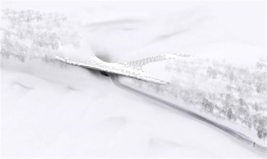 建筑體量從兩座小山丘伸展出來,這座建筑力求與周邊環(huán)境和諧共存,成為現(xiàn)代與史前時代的臨界點(diǎn)。圓潤柔和的形態(tài)蜿蜒曲折的圍繞著基地,這種形態(tài)尊重了濕地和周邊已有的自然環(huán)境。