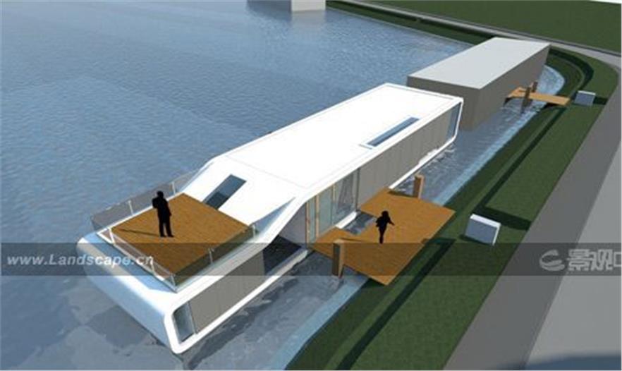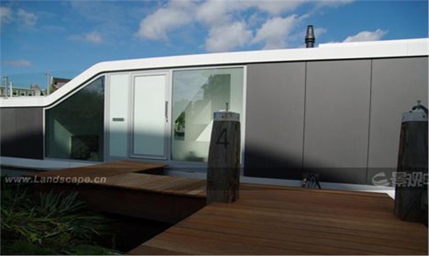 阿姆斯特丹以其古香古色的運(yùn)河和古典的內(nèi)河船只而聞名于世。然而,現(xiàn)代建筑和水的融合卻不是我們經(jīng)常能夠見到的。由+31設(shè)計(jì)師事務(wù)所設(shè)計(jì)的Omval水上公館是一座流線形的船屋,靜靜漂浮在阿姆斯特河上。這座鋁制層結(jié)構(gòu)的建筑坐落在歐洲歷史最悠久的首都里,是最富現(xiàn)代性的出色展示。它擁有引人入勝的內(nèi)部空間,在明媚的日光中更顯得美麗。這個(gè)低調(diào)的漂浮房屋是當(dāng)代設(shè)計(jì)在采取合理實(shí)施形式建設(shè)后,和諧融入周邊文脈中的最佳范例之一。