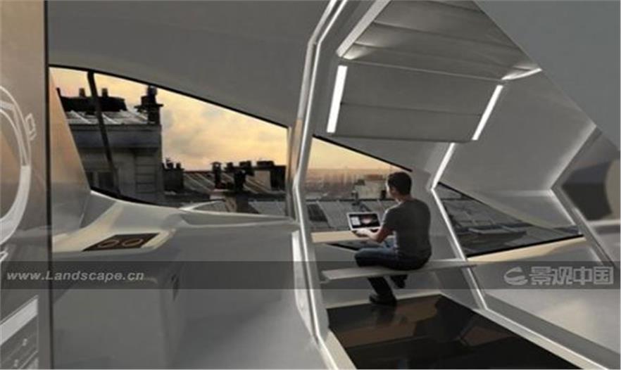 豆屋的活屋頂可利用一系列的光電板以捕獲太陽能,并將其儲存在電池元中。各個端頭的小的風(fēng)輪機(jī)給室內(nèi)提供通風(fēng)并發(fā)電,他們同樣可以用來集中雨水。這些雨水被收集和凈化后可用于洗澡和飲用。只需輕輕一按按鈕,外環(huán)就會旋轉(zhuǎn),豆屋內(nèi)部就會從一間臥室轉(zhuǎn)換成一間辦公室。