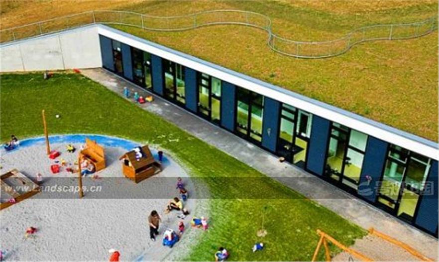 在丹麥,海寧•拉爾森設(shè)計(jì)的擁有美麗的植草屋頂?shù)腂ernts Have 日托中心里,玩耍時(shí)間貫穿始終。它的長窗戶透入了大量的陽光,而這一特殊的氣候區(qū)使得孩子們在寒冬都能不戴手套玩耍。一個(gè)一體化的能源工程使得能源消耗降低到了無法再低的程度。1,350m2的日托中心小心翼翼地嵌入山體一邊中,山體同時(shí)也作為了孩子們玩耍的一個(gè)小型香草和蔬菜園。