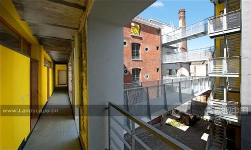 比利時一座老釀酒廠改造成為鍍鋅塊藝術(shù)公寓區(qū),這一令人耳目一新的改造位于布魯塞爾的黑馬莊。