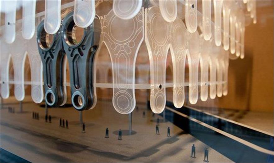 從上面的幾幅圖中我們不難發(fā)現(xiàn),展建筑模型中有連桿、有活塞、有曲軸,都來自汽車發(fā)動機組件。如果有機會能夠去參觀的朋友,不妨去找找看還有什么其他的汽車元素,展覽將于5月29日在倫敦開幕。