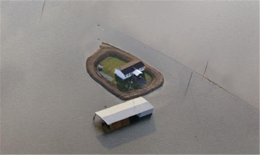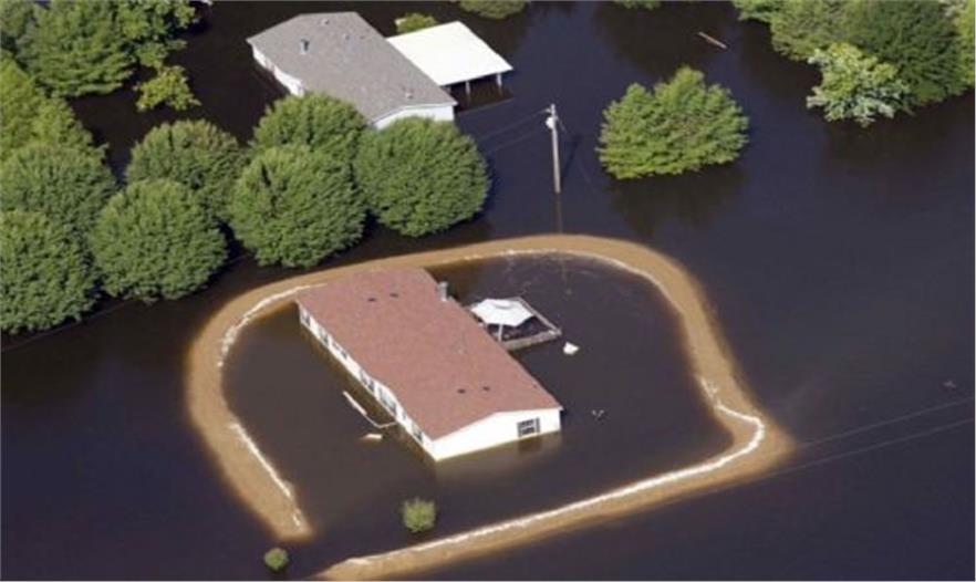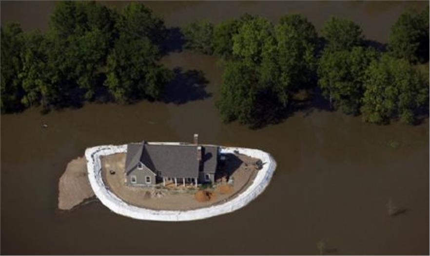房主已經(jīng)把這座住宅變成了孤島,密西西比河周圍的300英畝農(nóng)田被洪水淹沒。