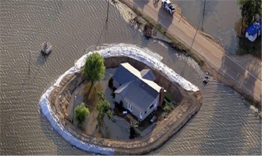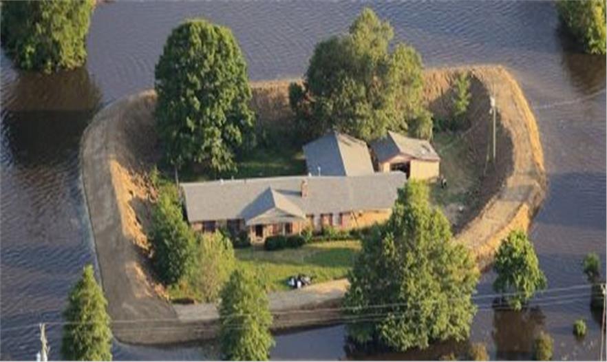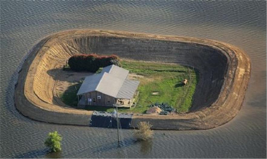 這座住宅位于密西西比州維克斯堡,房主用大量泥土和沙子堆成一座臨時(shí)性防洪堤,用來阻擋亞祖河溢出的洪水。