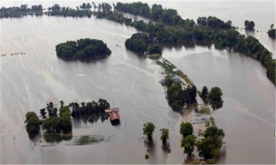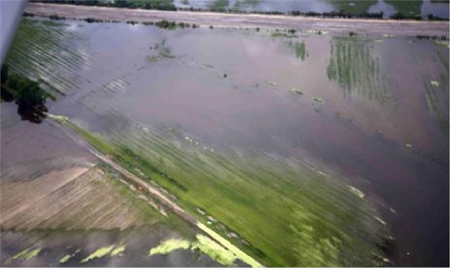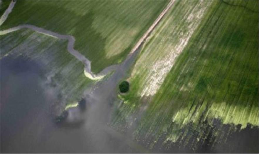 洪水像油漆刷一樣,橫掃大量農(nóng)田。